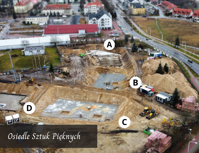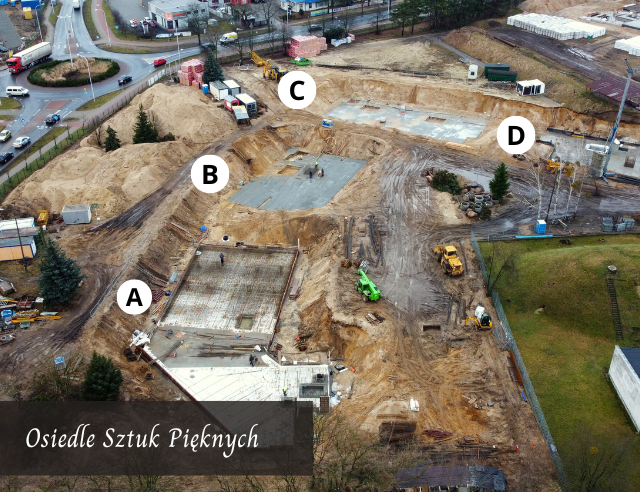 14.02 2022 Budowa podziemnych hal garażowych Rozpoczęły się prace związane z budową podziemnych hal garażowych w budynkach: A, B, C i D.